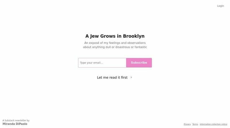 A Jew Grows in Brooklyn is a multimedia magazine of very eloquent and philosophical prose and sometimes vulgar and crude and chronically online jokes too.