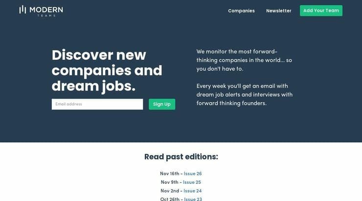 Every week you'll get an email with dream job alerts and interviews with forward-thinking founders.